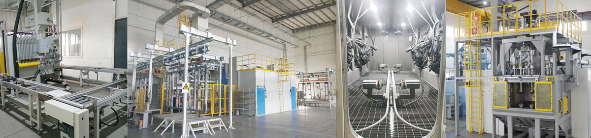 生產(chǎn)設(shè)備:樹脂砂鑄造、覆膜砂鑄造、失蠟鑄造、中頻電爐、爐前分析儀、退火爐等。